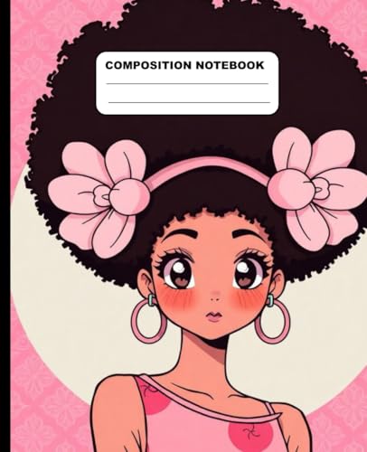 Anime Afro Girl With Pink Flower Head Band In Her Hair College Ruled Composition Notebook: Anime Theme Notebook 7.5 Inches x 9.25 Inches 110 Pages