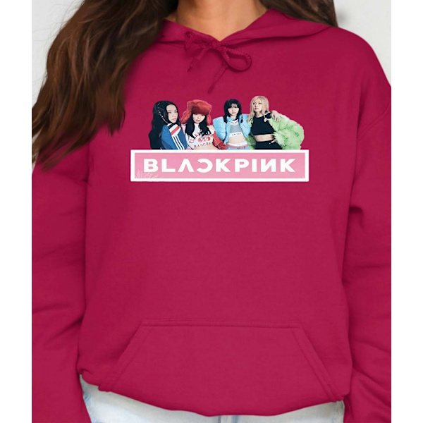 BlackPink dam hoodie: "Band Photo" - Rosa - storlek Small