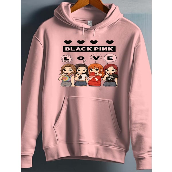 BlackPink barn hoodie: "Love" - rosa - storlek 12-14 år