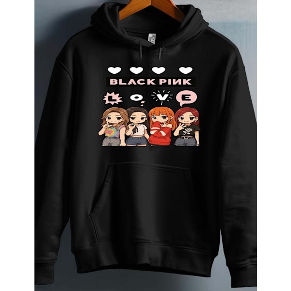 BlackPink barn hoodie: "Love" - svart - storlek 7-8 år
