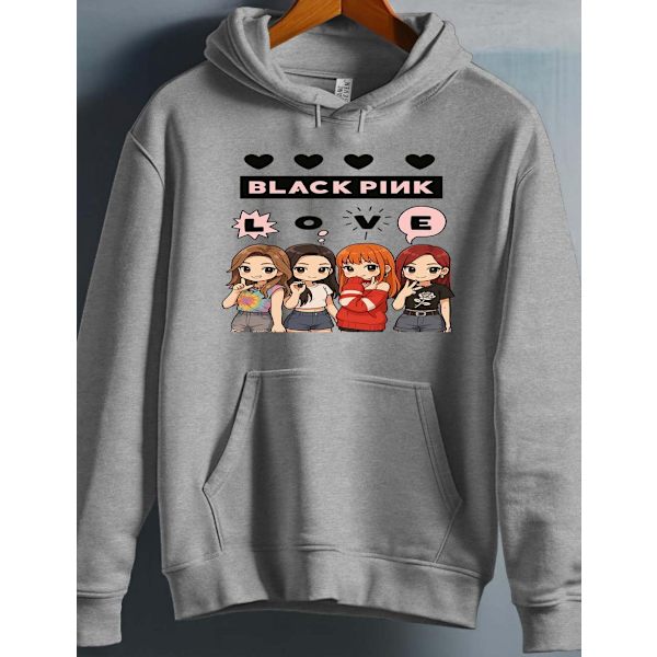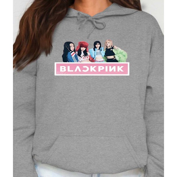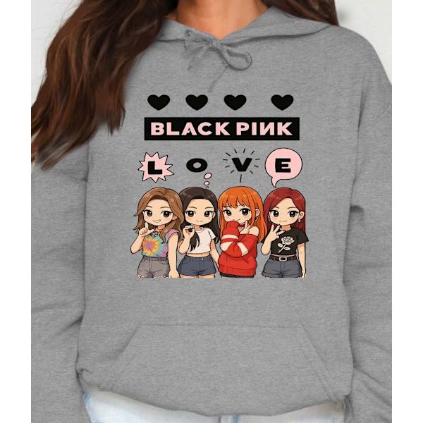 BlackPink dam hoodie: "Love" - Grå - storlek X-Large