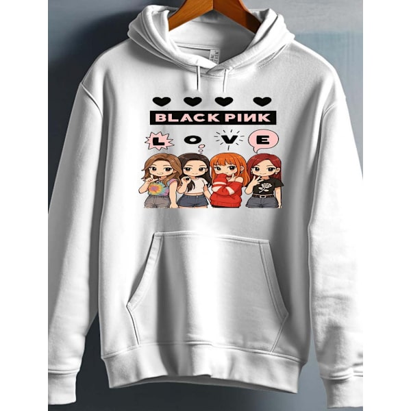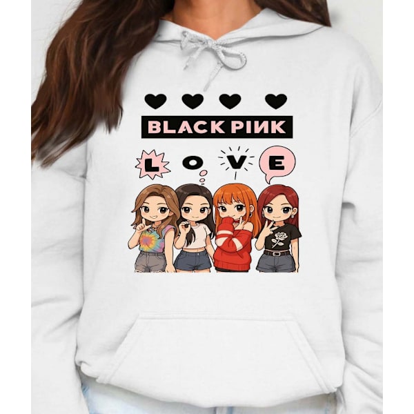 BlackPink dam hoodie: "Love" - Vit - storlek X-Large