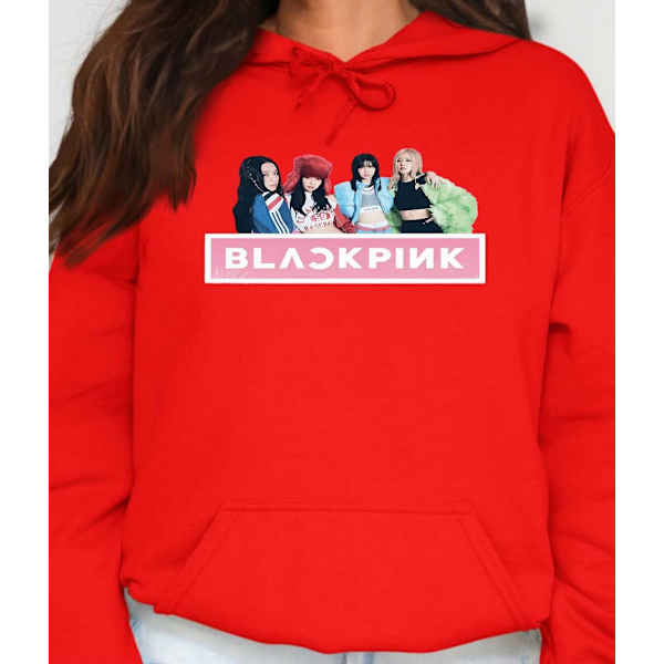 BlackPink dam hoodie: "Band Photo" - Röd - storlek Medium