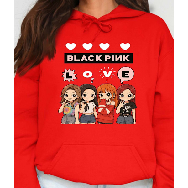 BlackPink dam hoodie: "Love" - Röd - storlek X-Large