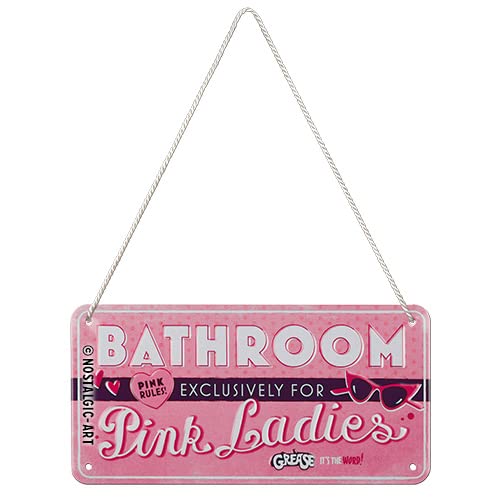 Nostalgic-Art Hängande skylt i retrostil, 10 x 20 cm, Grease – Pink Ladies Bathroom – Presentidé för filmälskare, Official License Product (OLP), av metall, vintagedesign