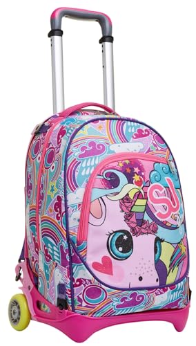 SJ GANG Rolling backpack, with Wheeled Book Bag, 3 in 1, Detachable Backpack + Trolley, for Teen, Girls&Boys, For School, Sport, Free Time, Laptop Sleeve, Italian Design, multicolor with Unicorn!