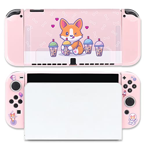 BelugaDesign Boba-fodral för hund | söt Kawaii hundbubbla te pastell corgi djurskydd | snäppskal kompatibelt med Nintendo Switch OLED (Switch OLED, rosa)