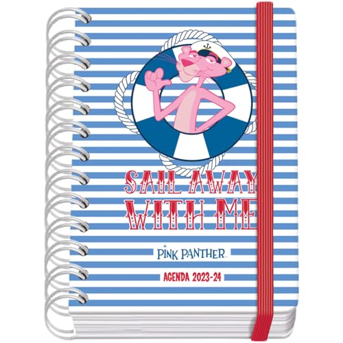 Dohe - Skoldagbok 2024 2025, A6 (12 x 17 cm), stängning av ringar och gummi, spanska och engelska, 4 sidor, september till juni, skolmaterial - rosa panter segel