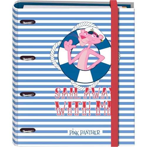Dohe Arkivskåp med 4 ringar med påfyllning, 100 ark, A4-storlek, gummiförslutning, 4 färgavdelare, kuvert dokumenthållare, 90 g/m² papper, kompressor, skolmaterial - rosa panter