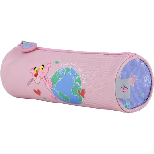 DOHE - Rosa panter runt skolfodral - dragkedjestängning, officiell licens, slitstark polyester, 21 x 7,5 x 7,5 cm - skolmaterial, Rosa, Runt pennfodral