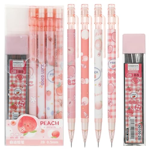 Molain 4 stycken söta blyertspennor set, 0,5 mm stiftblyertspennor mekanisk med 1 burk HB blyertspennor Kawaii stuff för barn skola skriva skissa (4)