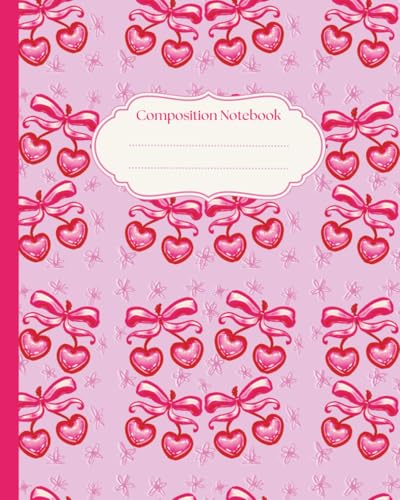 Preppy Cherry Coquette Bow Composition Notebook: Pretty Pastel Bow Design | Vintage Preppy Stuff | Pattern Pink Girly Diary | Aesthetic Design Ideal | ... Girls, Women, School, Office, College, Work