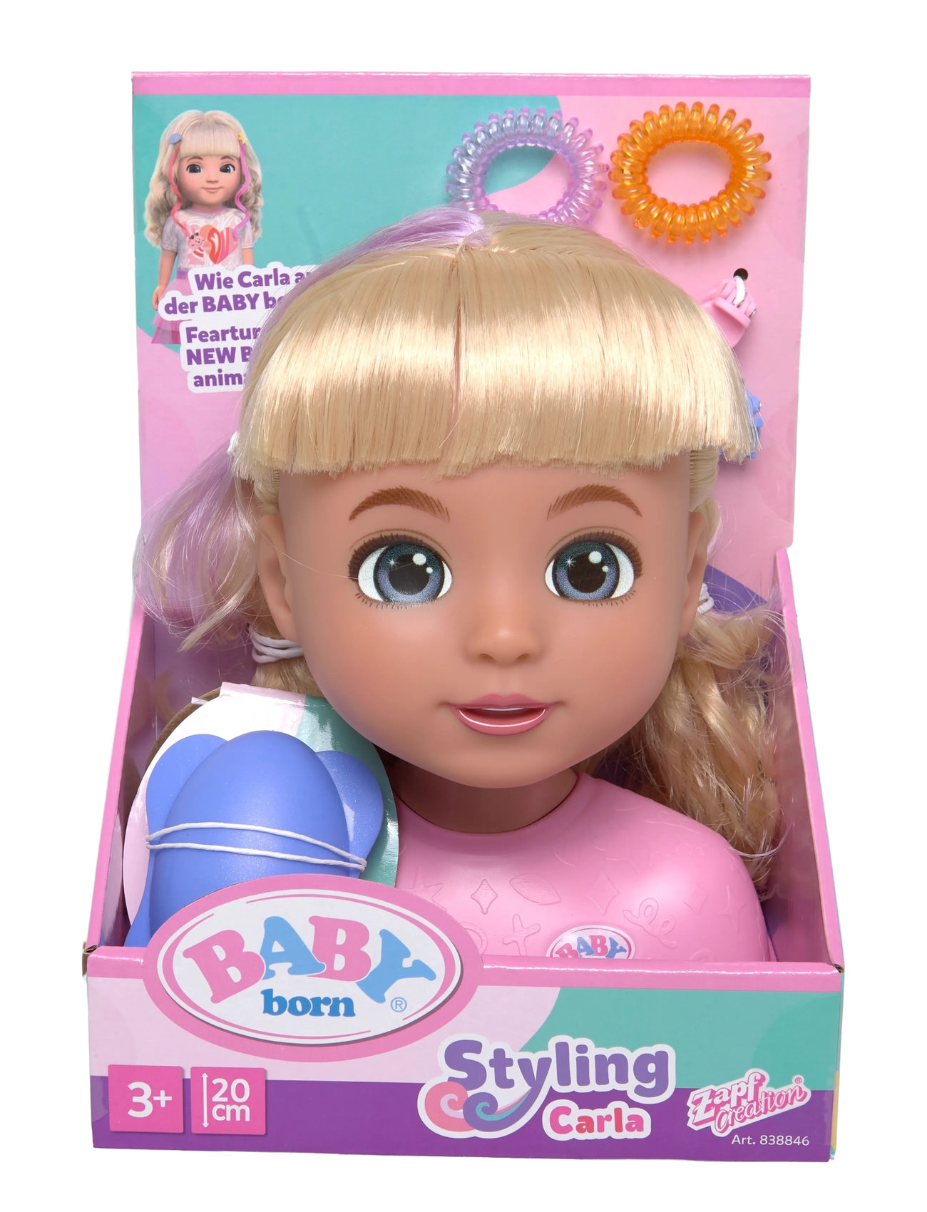 Jamara 460618 Bella Styling 8-delars frisörhuvudset, coola trendiga frisyrer, hållbar, främjar fantastisk rollspel, inkluderar hårtillbehör, rosa