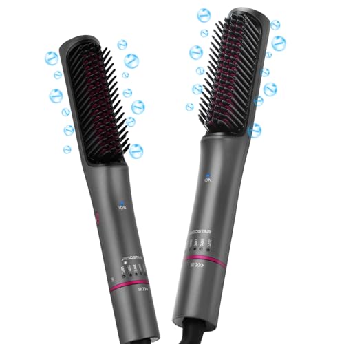 Aigostar Tessa- Glättbürste,Joniserande Hårborste för Rakt Hår, Rätthållare, 5 Justerbara Temperaturer, 130-210°C, Snabb Styling, Infraröd, Bärbar Värmekam, Universell Spänning