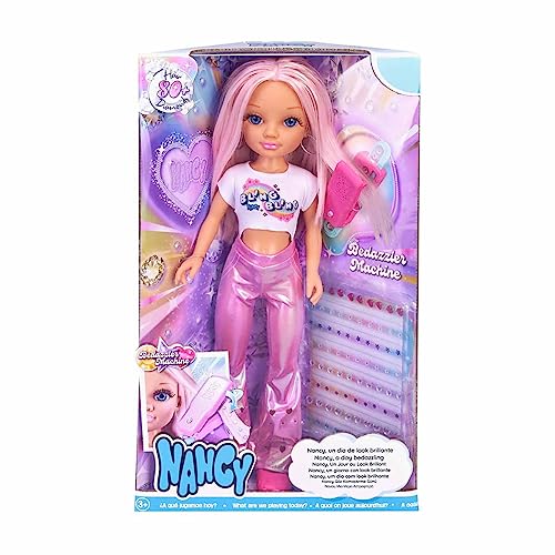 Nancy - En dag med Glänsande utseende, Rosa hår docka, hår styling och dekoration set, skapa mönster med glitter, Gems Machine, 100 Tillbehör, pojkar och flickor sedan 3 år, Känd (NAC45000)