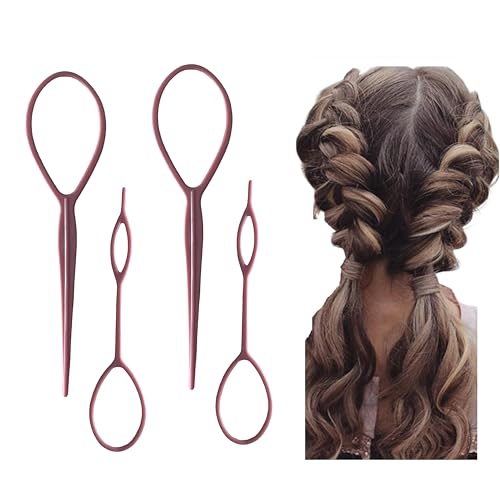 Set om 4 Topsy Tail Tool – Hair Loop Styling, Hair Braiding Tool, Ponytail Pull Through Hair Twister (rosa)