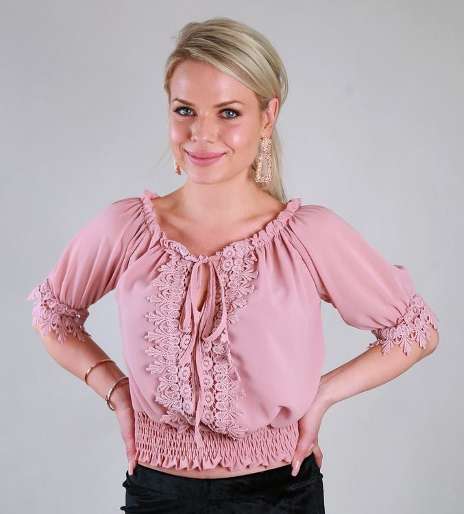Rwbernadine Organic Sl Lace Top Pink Rosemunde