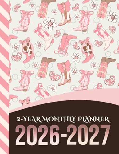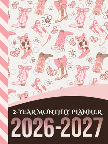 2-Year Monthly Planner 2026-2027: Hardcover / 8.5x11 Dated Organizer With 100 Blank College-Ruled Notebook Pages Combo / 24-Month Schedule / Pink Cowgirl Boot - Country Western Theme Pattern