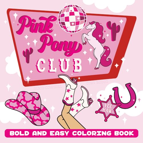 Pink Pony Club Disco Cowgirl Cozy Rodeo Bold and Easy Coloring Book for Adults and Teens: Cute Yee Haw Party Girl Aesthetic for Comfy Stress Relief with Simple and Big Country Western Cowboy Designs