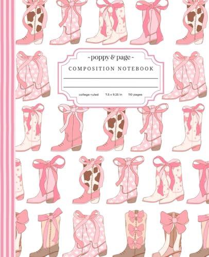 Preppy Composition Notebook: Cute Pink Coquette Western Cowboy Boot Design with Stripes and Bows for Girls | College Ruled Notebook Ideal for School