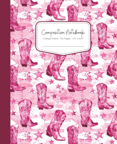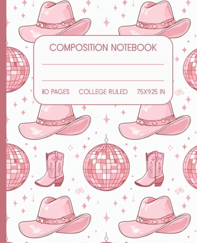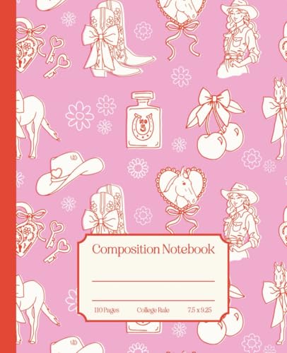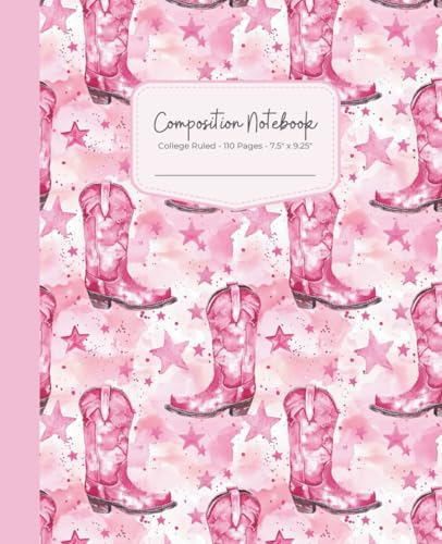 Composition Notebook College Ruled: Cute Pink Cowgirl Aesthetic | Western Boots, Hats & Feminine Charm for School, College & Work