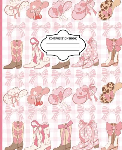 Pink Coquette Western Composition Notebook: Cute Boots, Hats and Bows Aesthetic Journal, 7.5 x 9.25, 120 wide rules pages, for kids, teens, students and adults