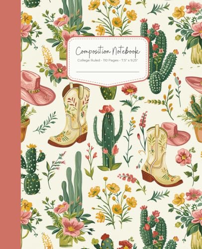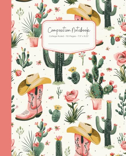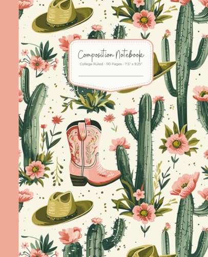 Composition Notebook College Ruled - 110 Pages - 7.5" x 9.25": Wildheart & Co. Cowgirl Desert Bloom Notebook for Teen Girls & Women – Pink Western ... Accents – 2025 Wildflower Range Collection