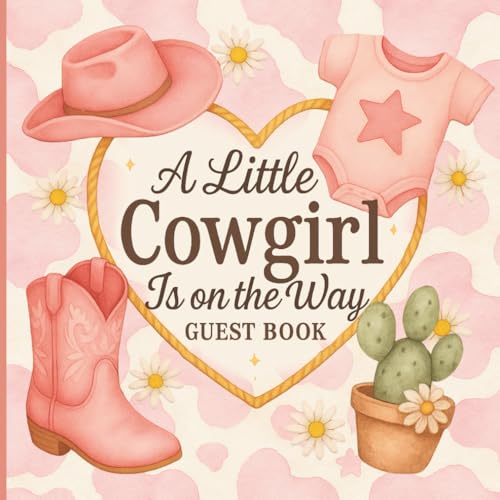 A Little Cowgirl on the Way Guest Book: Rustic Western Baby Shower Guest Book with Sign-In Pages, Wishes, Advice, Gift Log, and Photo Memories – Pink Cowgirl Theme Keepsake for Girls