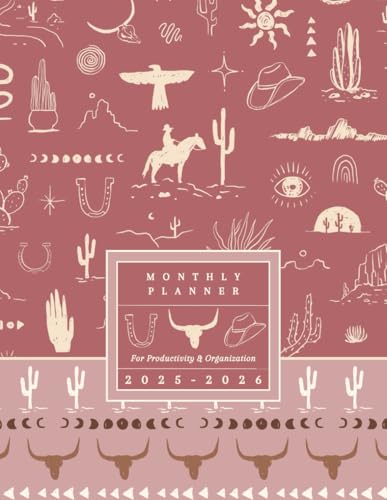 Western Monthly Planner 2025-2026: Pink Cowgirl Themed Calendar Agenda For Productivity and Organization; 8.5 x 11"