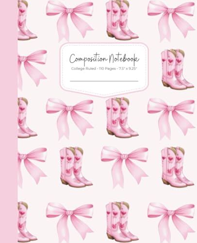 Composition Notebook College Ruled - 110 Pages - 7.5" x 9.25": Wildheart & Co. Coquette Cowgirl Journal for Teen Girls & Young Women – Pink Western Boots & Bows – 2025 Sweet Rodeo Dreams Collection