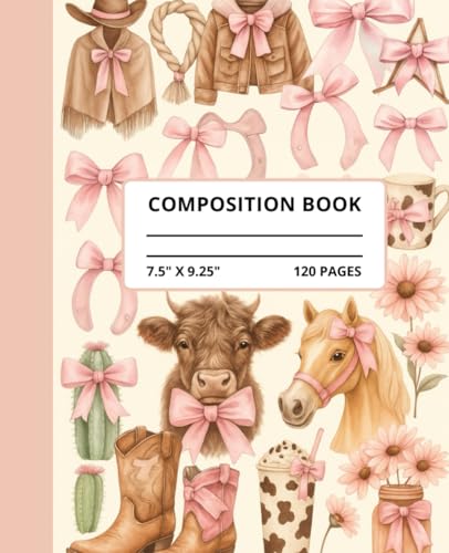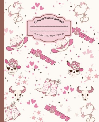 Composition Notebook Cute Pink Western | Wide-ruled Notebook | Composition Notebook 120 pages, 7.5x9.25
