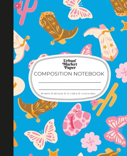 Urban Market Paper: Composition Notebook – Saddle Sweetheart: College Ruled | 200 Pages | 7.5 x 9.25 in | Pink Butterflies & Girly Western Cowgirl ... Office, School, Writing or Everyday Use