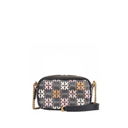 Pinko damkamerafodral PVC logotyp tryck väska, Zm7q_svart/brun/vit. Antik Go, Zm7q_svart/brun/vit. antik go
