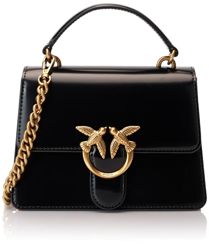 Pinko Love One Smart Silk Kalv, Resetillbehör - Väska för Hals Kvinna, Z99Q_Svart-Antique Gold, 12, Z99q_svart-antikt guld, 12