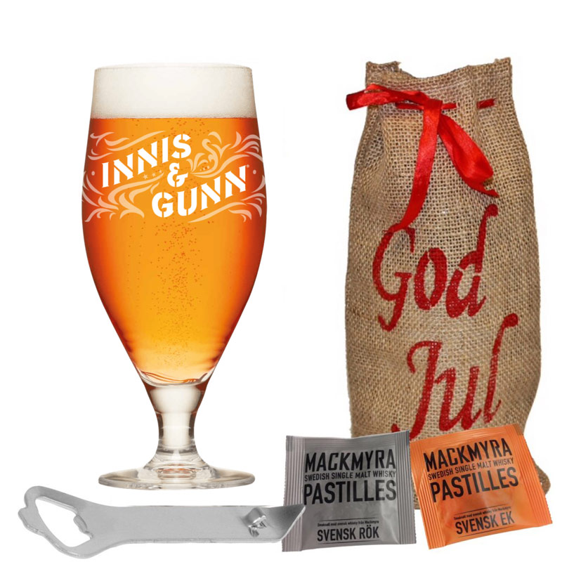 Julpresentpack med öppnare, pastiller och Innis & Gunn ölglas half pint