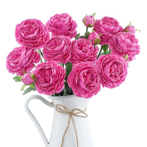 U/N Konstgjorda pioner blomma silke pion bukett 4 buntar falsk persisk ros med eukalyptusblad för hem bröllop fest dekoration (rosenröd + rosa)