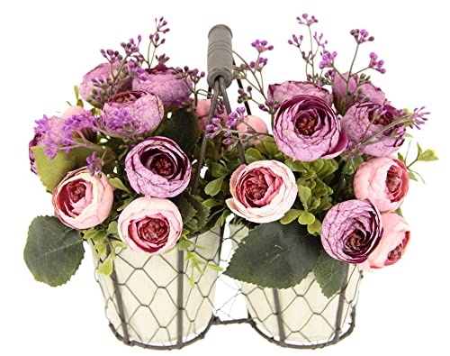 Konstgjorda ranunklar i korg blomsterarrangemang pion bondros ros arrangemang mitten av silke blomma bukett konstgjord blomma buketter oäkta blomma bröllop