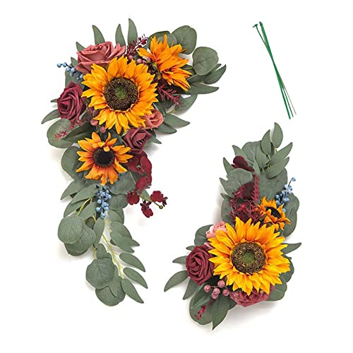 Maoiut Artificiell blomma swag uppsättning av 2 rosor pion solrosor blommig swag krans konstgjord båge blommor för bröllop heminredning (mörkgul)