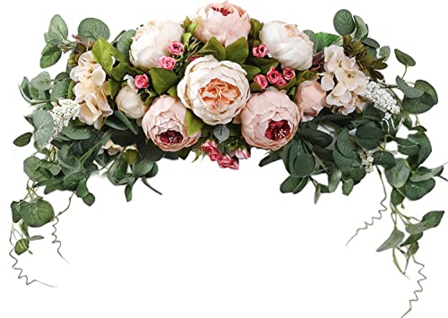 HAOSHICS Konstgjord blomma, pion, festong, falsk silkesblomma, färgglad, blandad, vårblommor, för bröllopsbåge, bord, bordsdekoration, hängande för hem, spegel och väggdekor (champagne)
