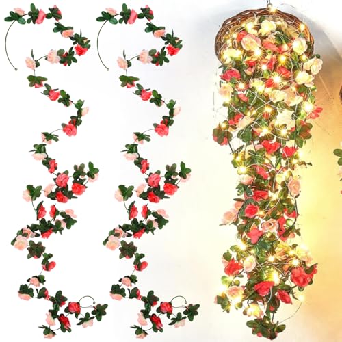SHACOS 3 st (totalt 6 meter) konstgjord ros, girlang, blå, falsk ros, vinstockar, pion, konstgjorda blommor, hängande konstgjord ros, girlang för bröllop, dekoration, hem, båge, inomhus, utomhus
