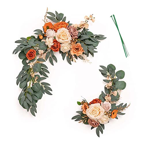 Maoiut Artificiell blomma swag uppsättning av 2 rosor pion solrosor blommig swag krans konstgjord båge blommor för bröllop heminredning (orange)