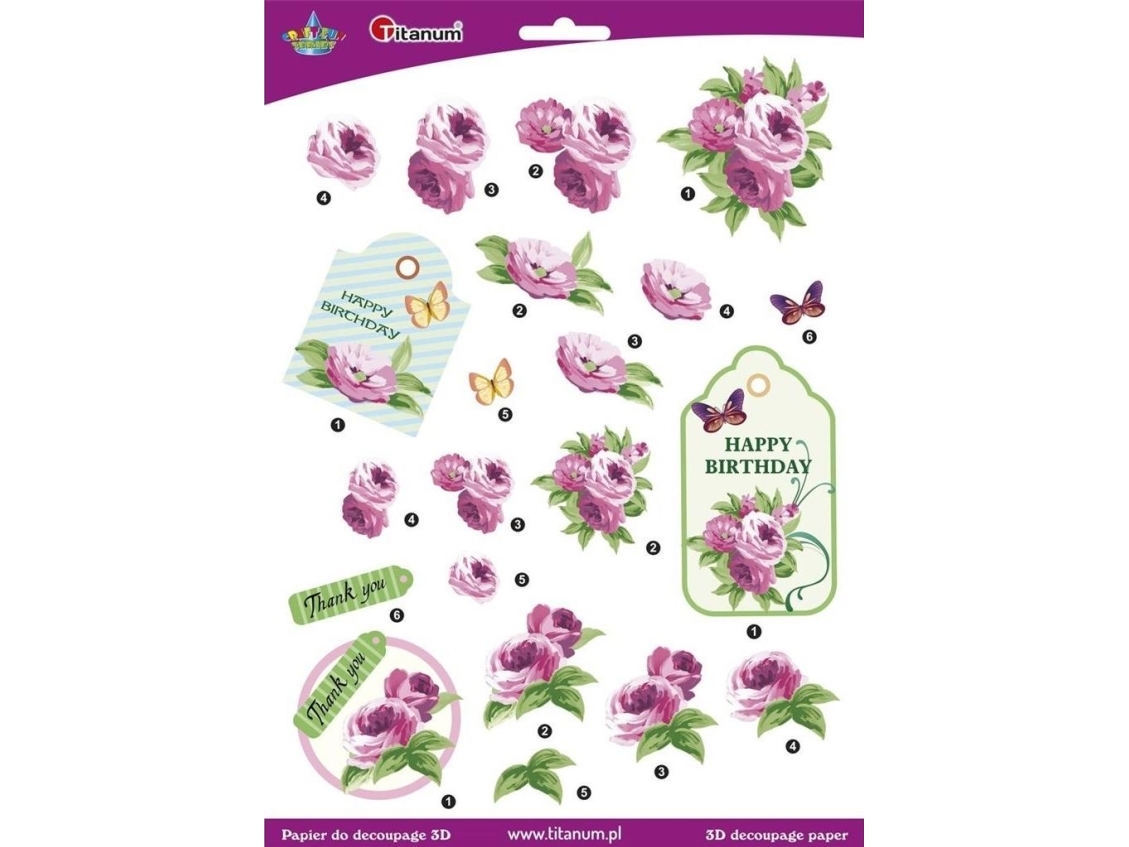 Titanum 3D Decoupage Papper Pion Blommor Ark