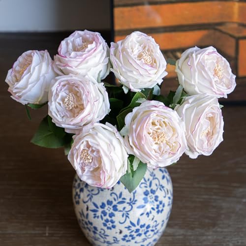 Duovlo Konstgjord pion silkesblommor falska blommor vintage bröllop heminredning, förpackning med 1 (vårmjölk vit)