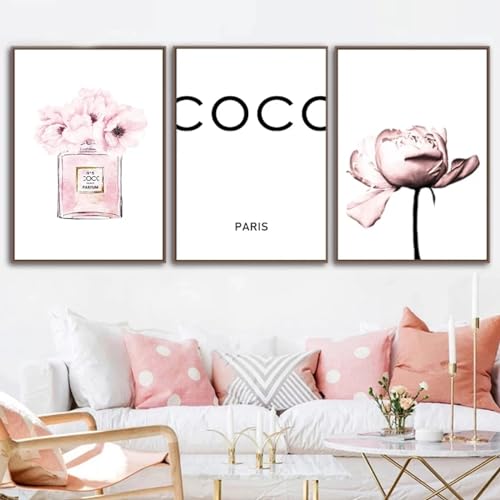Mode parfym illustration väggkonst kanvas målning tryck rodna rosa pion blomma bilder nordisk affisch hem rum dekor – 40 x 50 cm x 3-ingen ram