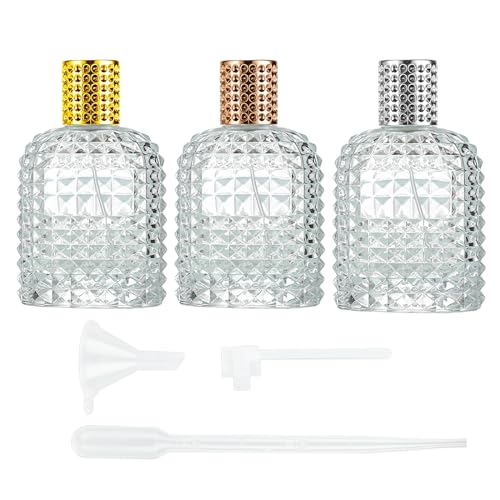 AILUYA Parfymflaska sprejflaska, bärbar sprayflaska med lock, 3 stycken 50 ml ananas parfymflaska, påfyllningsbar reseflaska, kristallglas parfymflaska, tomt glas med pipetter och tratt för kvinnor