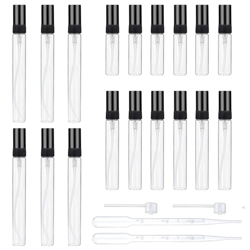18 st parfymsprejglas, 3 ml, 5 ml, 10 ml, doftprover flaskor, mini fin dimma sprayflaska transparent, liten parfym sprejflaska påfyllningsbar, tom sprejflaska för resor med pipetter, pump