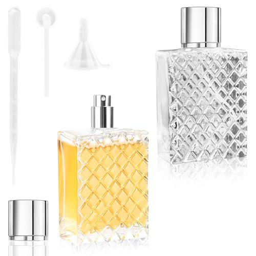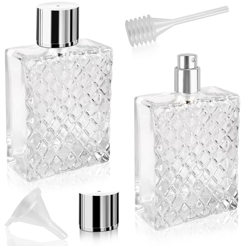 Wvu & Wvo 100 ml parfymsprejflaska | 2 stycken parfymsprayare påfyllningsbar parfymflaska tom | för kvinnor och män ficksprejflaska | med pipetter och tratt | för parfym, resor, kosmetika