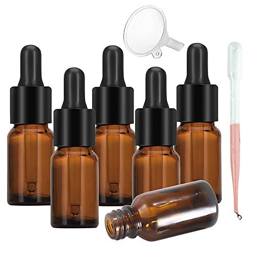 Brevanza 6 st 30 ml mörkt glas droppare med trattar, eteriska oljeflaskor, glasflaskor med pipetter, droppflaska med etiketter, för eteriska oljor, kosmetika, parfymer och andra vätskor