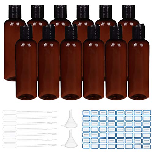 BENECREAT 10 pack 200 ml tom reseflaska i plast, med svart skivlock med pipetter, etiketter för toalettprodukter schampo