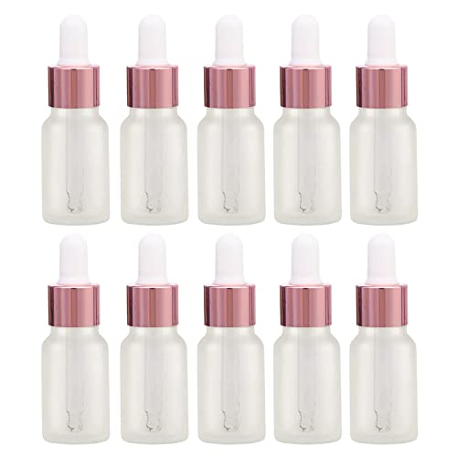 JamHooDirect 10 st, 10 ml droppflaskor i glas med pipetter, tomma mini-droppflaskor för eteriska massageoljor/kemiska vätskor (frostad klar/roséguld lock)